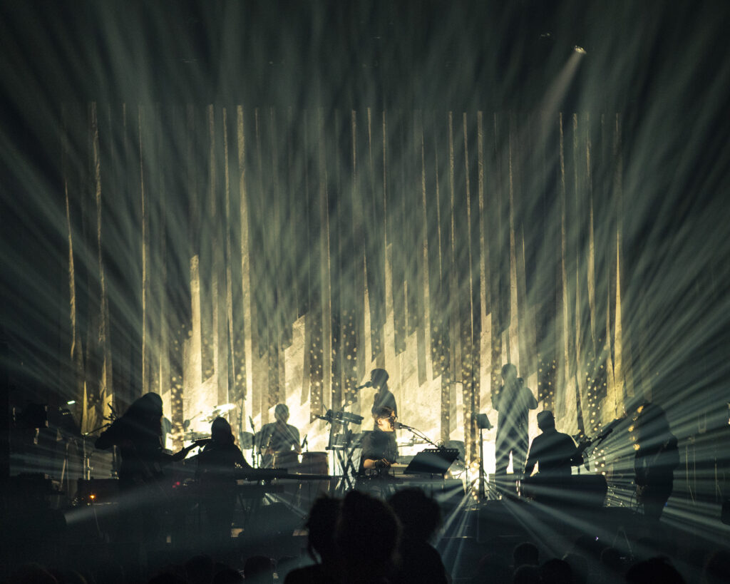 He can still see the faces in the audience, the hands raised in the air, and some people with their eyes closed, while others were moving quietly—even crying—or in some peaceful state of grace. The concert was never something the Canadian artist considered releasing as an album, much less a film. Intended as a one-off show, on stage Foster conducted 10 musicians, including percussion, trumpet, and cello, through an exquisite light show, but thought nothing more of the performance… at the time. Nearly two years later, Foster is releasing the entire live performance, Standing Under Bright Lights (Hopeful Tragedy Records), out April 16, as a triple LP and DVD.