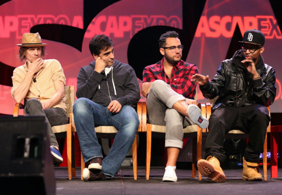 Brendan Benson, Emanuel “Eman” Kiriakou, Dan “ROBOPOP” Omelio and Christopher “Drumma Boy” Gholson during their panel Confessions of a Hit Producer