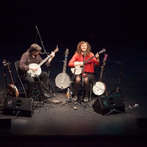 Both pulled from the array of five-stringed tools of their trade in accompanying the other throughout the evening, starting off with “City of Refuge,” a sweeping Washburn number from her 2011 sophomore solo album of the same name. Fleck took the lead on “New South Africa,”,a melodic tune from Béla Fleck and the Flecktones’ 1996 effort Live Art, and Washburn’s clawhammer picking kept right up with his rapid-fire banjo rolls.