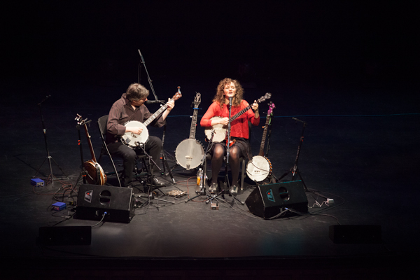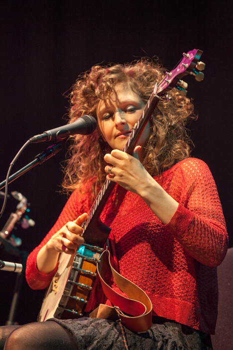 Both pulled from the array of five-stringed tools of their trade in accompanying the other throughout the evening, starting off with “City of Refuge,” a sweeping Washburn number from her 2011 sophomore solo album of the same name. Fleck took the lead on “New South Africa,”,a melodic tune from Béla Fleck and the Flecktones’ 1996 effort Live Art, and Washburn’s clawhammer picking kept right up with his rapid-fire banjo rolls.