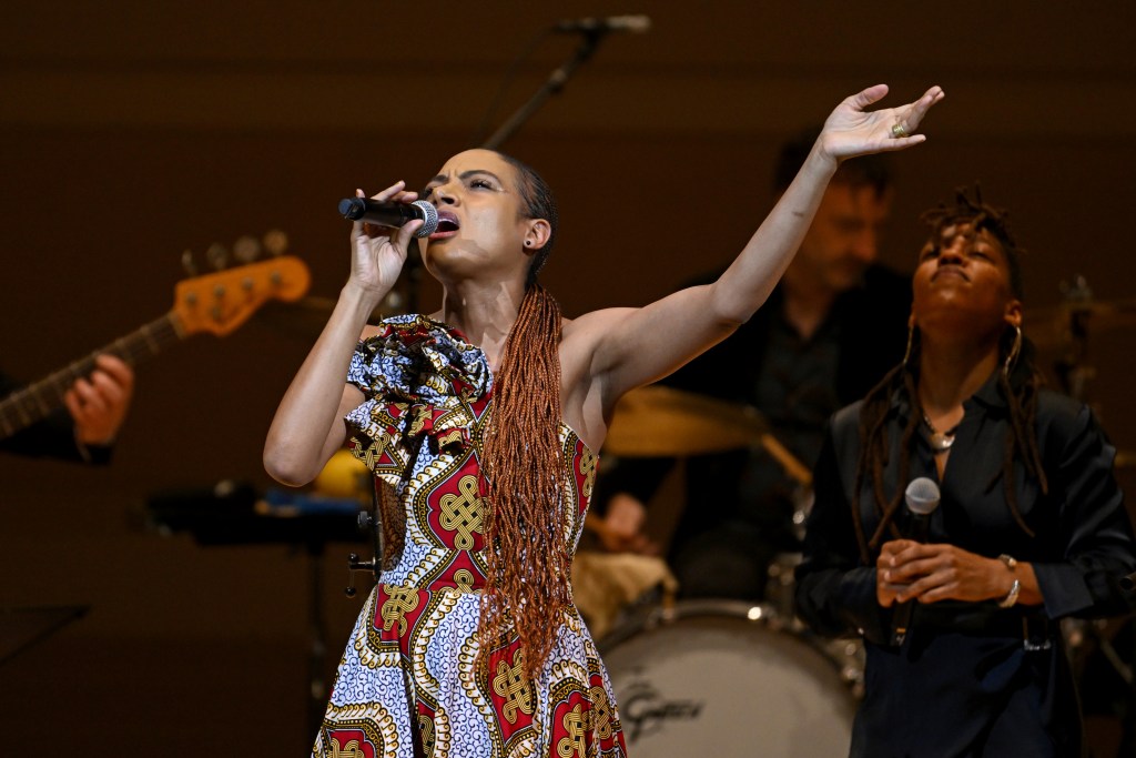 Russell continued her musical sermon of peace with “We Raised Our Cup” from Anaïs Mitchell’s folk-opera Hadestown with cast members Ganessa James and cast members Morgan Dudley, along with a duet with Toro y Moi of the Rolling Stones‘ “Wild Horses.” Toro y Moi, the moniker of Chaz Bear, went on with another cover of Paul McCartney‘s “Maybe I’m Amazed,” before hometown rocker Jesse Malin shared “Greener Pastures” and “Meet Me at the End of the World.”