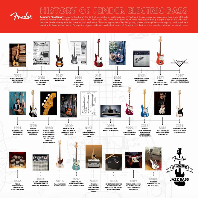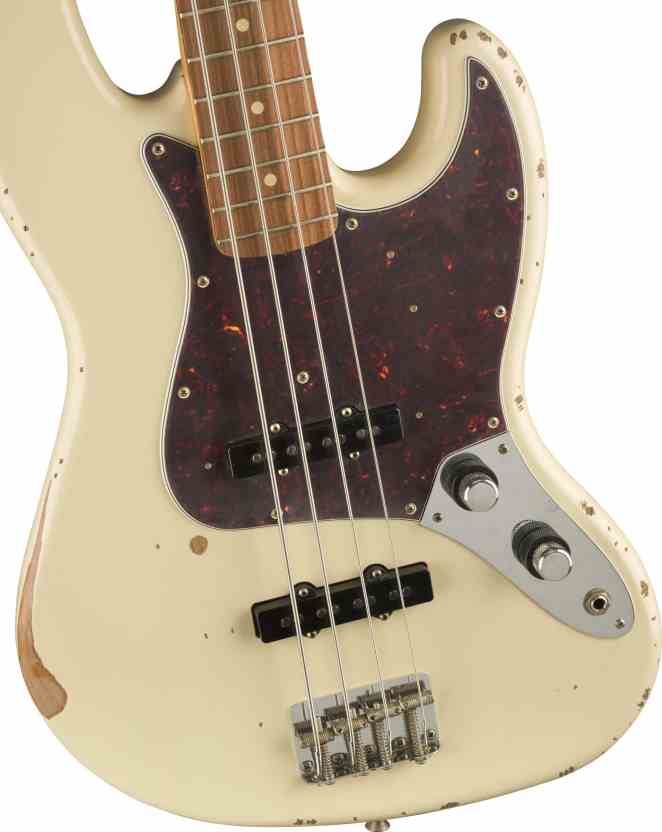 The Road Worn edition, available today, features a 'mid-60s C'-shaped neck, 20 vintage-style frets, a 4-saddle bridge, chrome hardware and a 4-bolt neck plate. It is available in three different color choices: 3-Color Sunburst, Olympic White and Firemist Silver. The 60th Anniversary Road Worn Jazz Bass® is priced at $1299.99