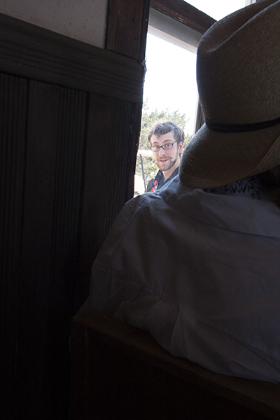 Another performer peering in the window during the Spirit Family Reunion set