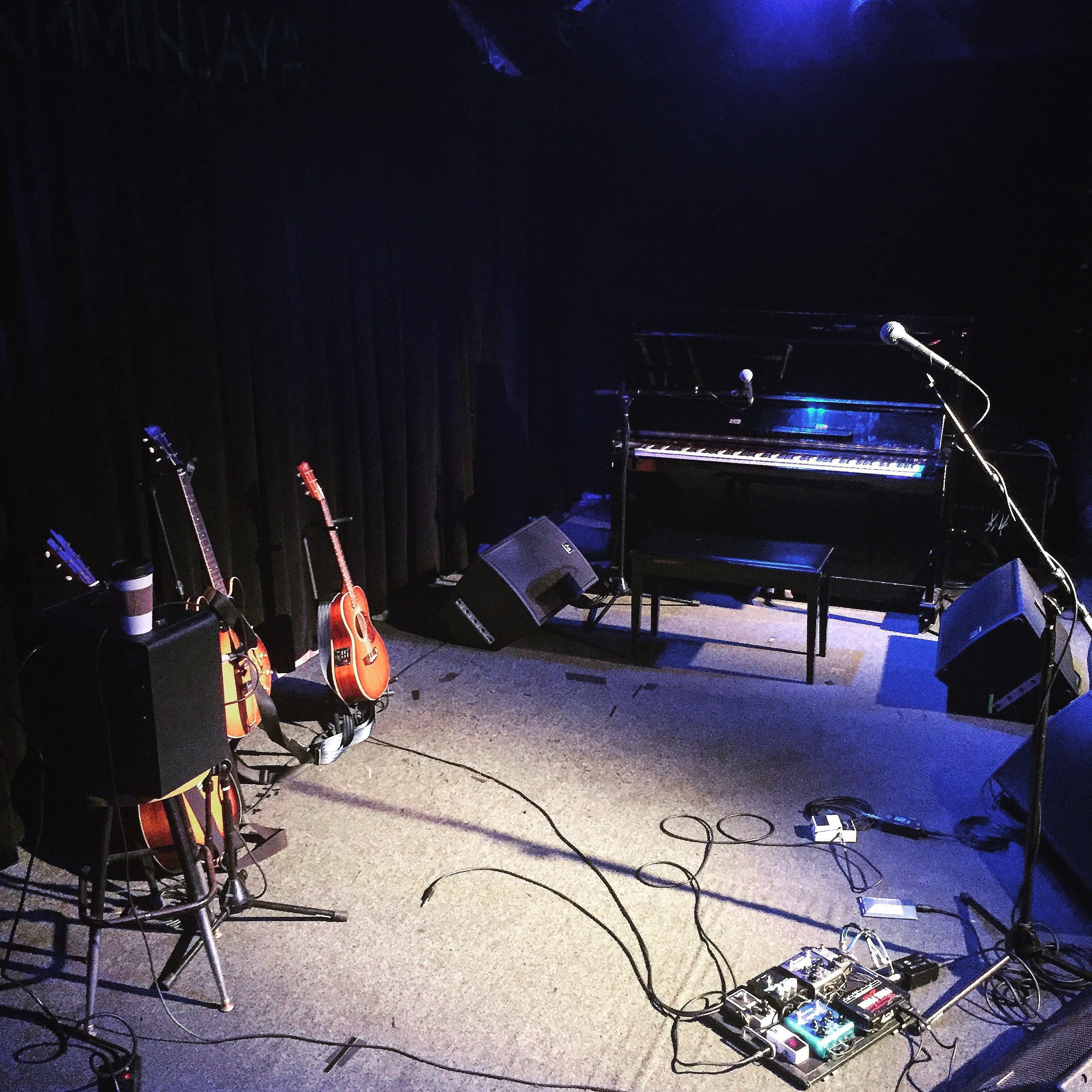 After a show in Ft. Worth at Live Oak (one of my new favorite venues), then Lincoln, NE, Columbia, MO, and a brief stop in Nashville for a private performance, I drove up to Vienna, VA, near DC to play Jammin’ Java, one of the best venues on the East Coast. It was an excellent show, and they had a real piano for me! Here is a look at the stage setup we had that evening.