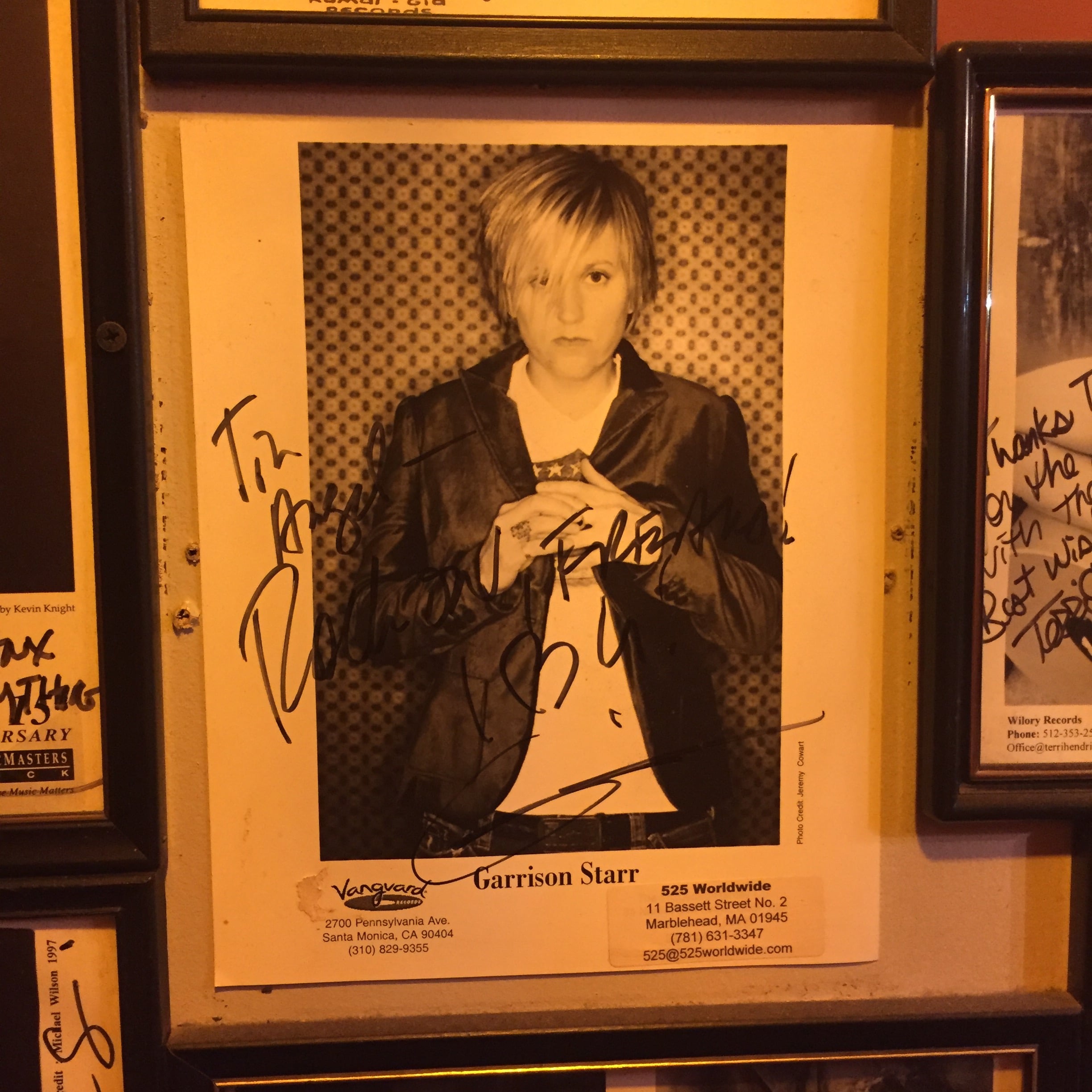 Next was Philly. I hadn’t played at Tin Angel since 2009. It’s just like I remembered it. I love playing clubs that have been around a while because sometimes you see old press shots on the wall of people who have played there. Hey, is that my friend and collaborator, Garrison Starr?