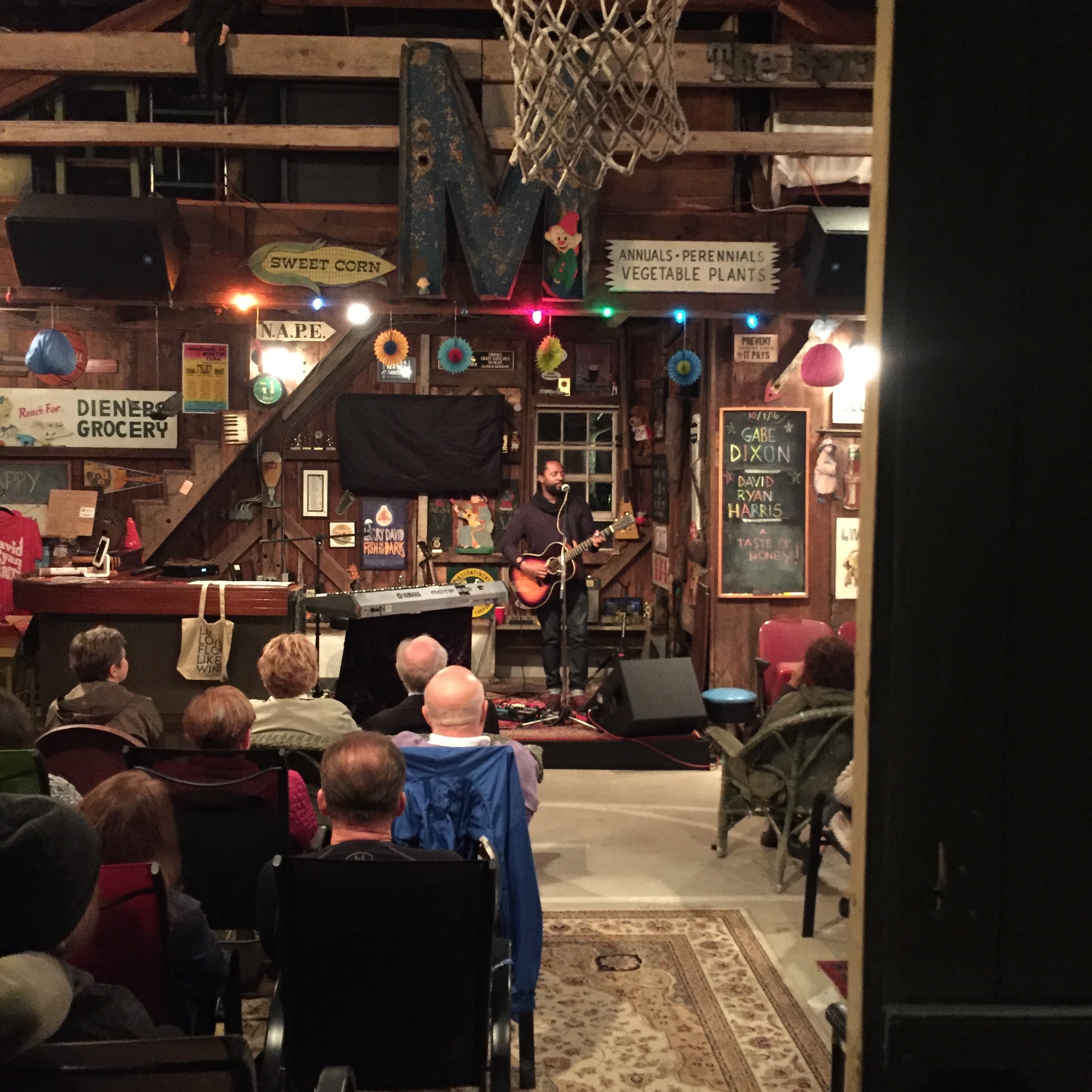 The only downside to house concerts is… I can’t think of one. House concerts rule! This one was in Doylestown, PA in a totally decked-out barn. Here is DRH doing his thing that night. That’s a barn door on the right side of the photo.