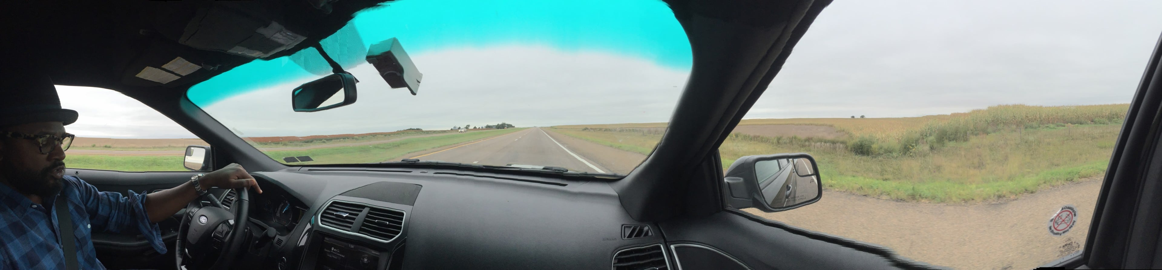 Let me just tell you, it was a long ride across Kansas from Lawrence to Denver, CO. Here’s the panoramic view from where I sat. Kansas is flat, Everybody! Really flat.