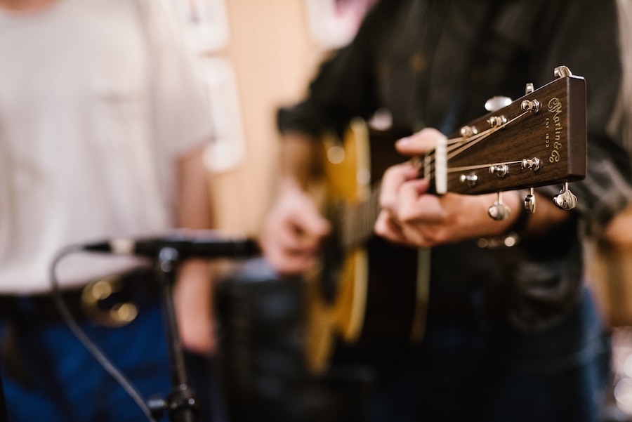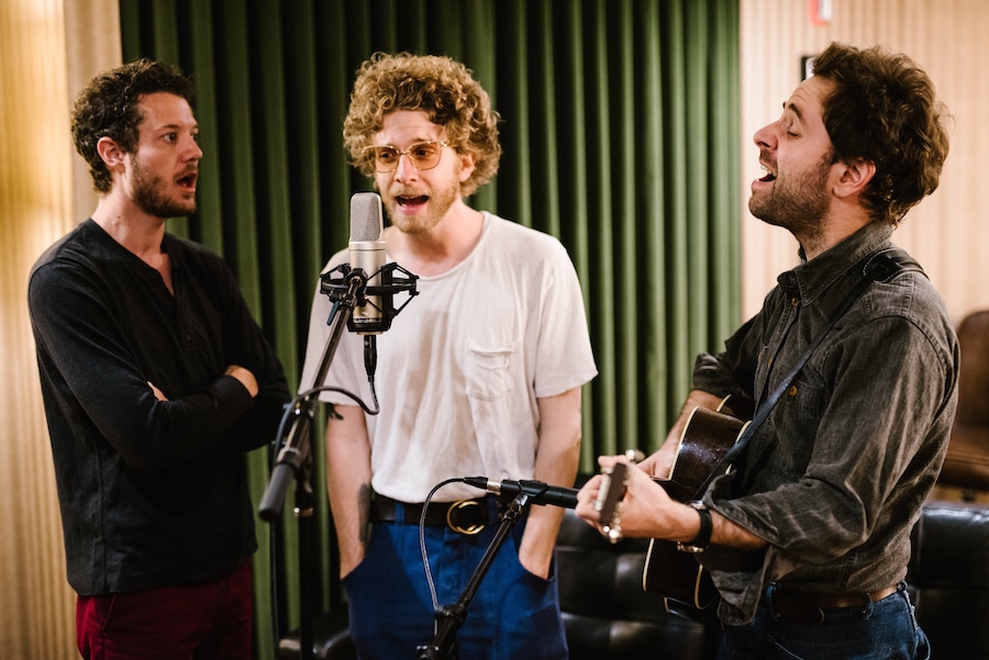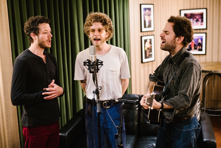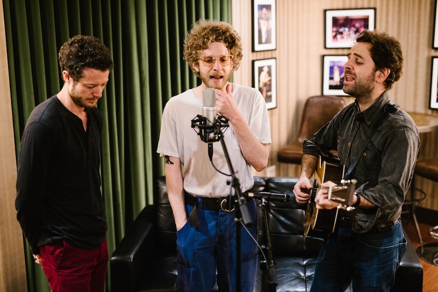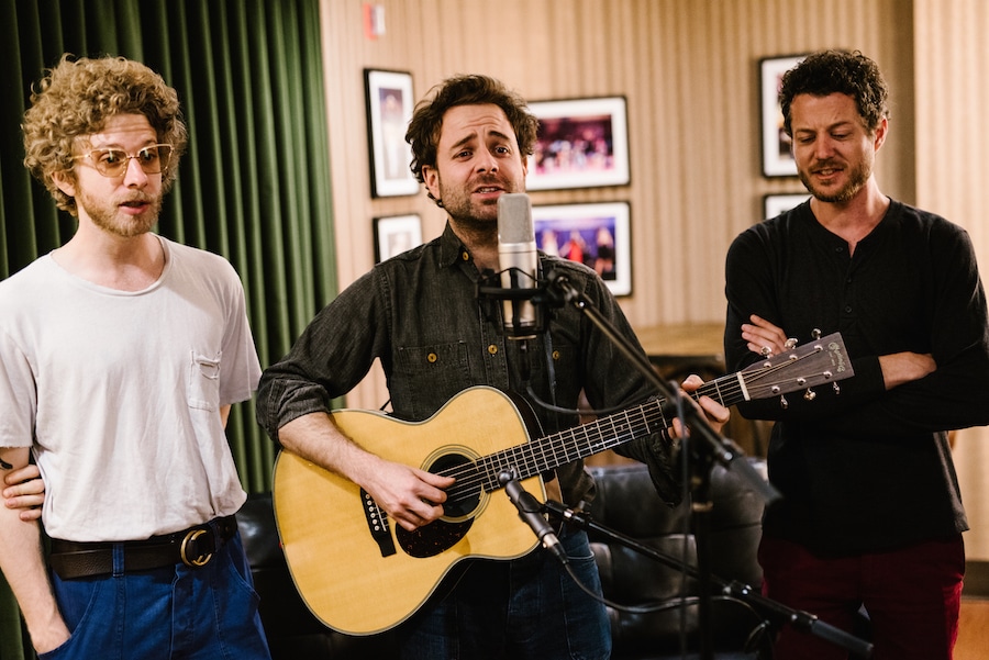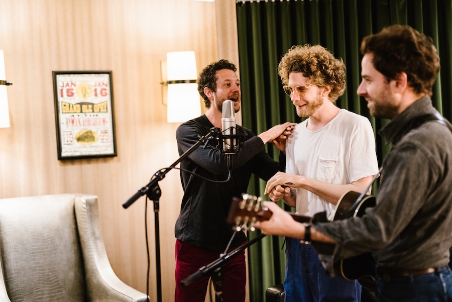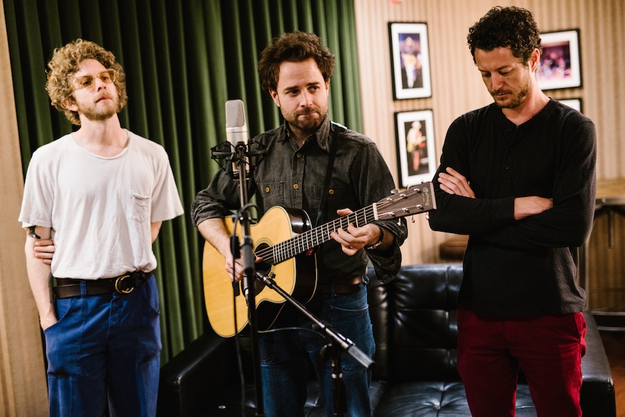 Dawes performing “Roll With The Punches” backstage at the Ryman Auditorium for our Martin Guitar sessions series. (Pictured left to r) Griffin Goldsmith, Taylor Goldsmith, Lee Pardini. All photos by Kate Cauthen