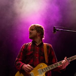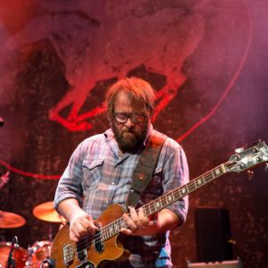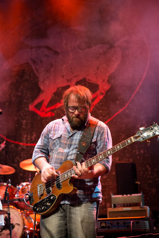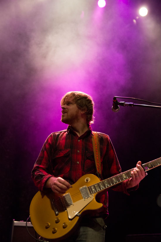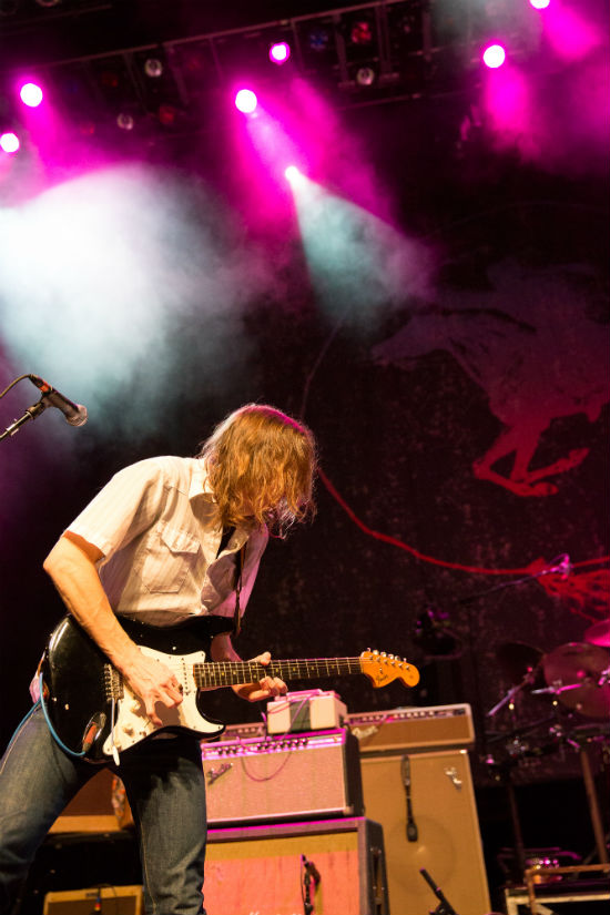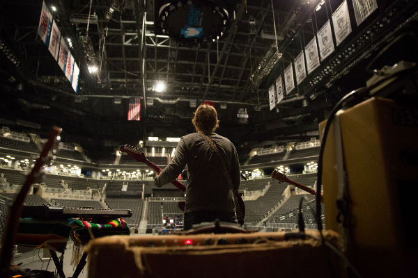 A vintage amp-eye-vantage of guitarist Joel Graves during sound check at Barclays Center.