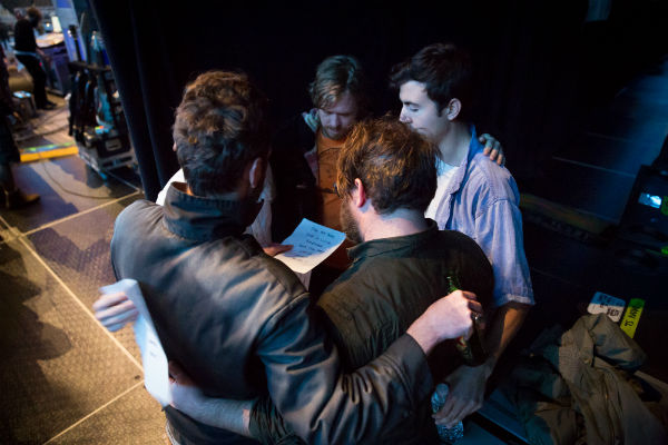 Guitarist Joel Graves shares a smile with his bandmates in Atlantic City, NJ.