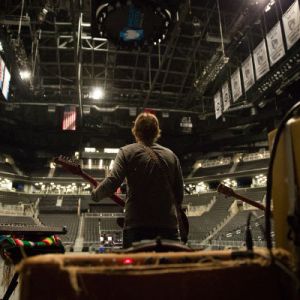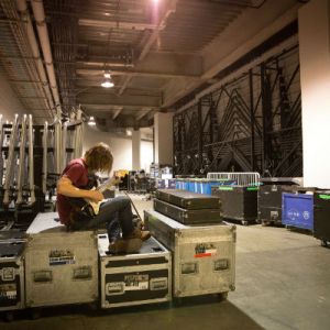 Guitarist Jason Soda warms up backstage at Jay-Z’s Barclays Center in Brooklyn, NY.