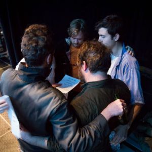 Everest huddles at Barclays Center, just before the lights go down.