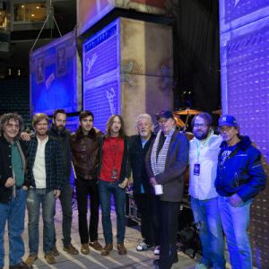 Everest on stage in Bridgeport, CT with tour mates Crazy Horse. (From Left to Right: Ralph Molina, Joel Graves, Russell Pollard, Kyle Crane, Jason Soda, Poncho Sampedro, Neil Young, Elijah Thomson, Ralph Molina)