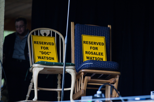 Memorial chairs on the Watson Stage reserved for both Doc and RosaLee Watson