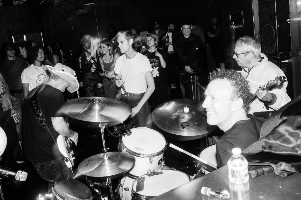 P*rno for Pyros played a secret show in downtown Los Angeles, California on Friday (November 17), which reunited the band with bassist Mike Watt. “We’re back in Downtown Los Angeles where our humble beginnings are from,” said singer Perry Farrell to the crowd. “It’s gnarly, artistic, and exciting.”
