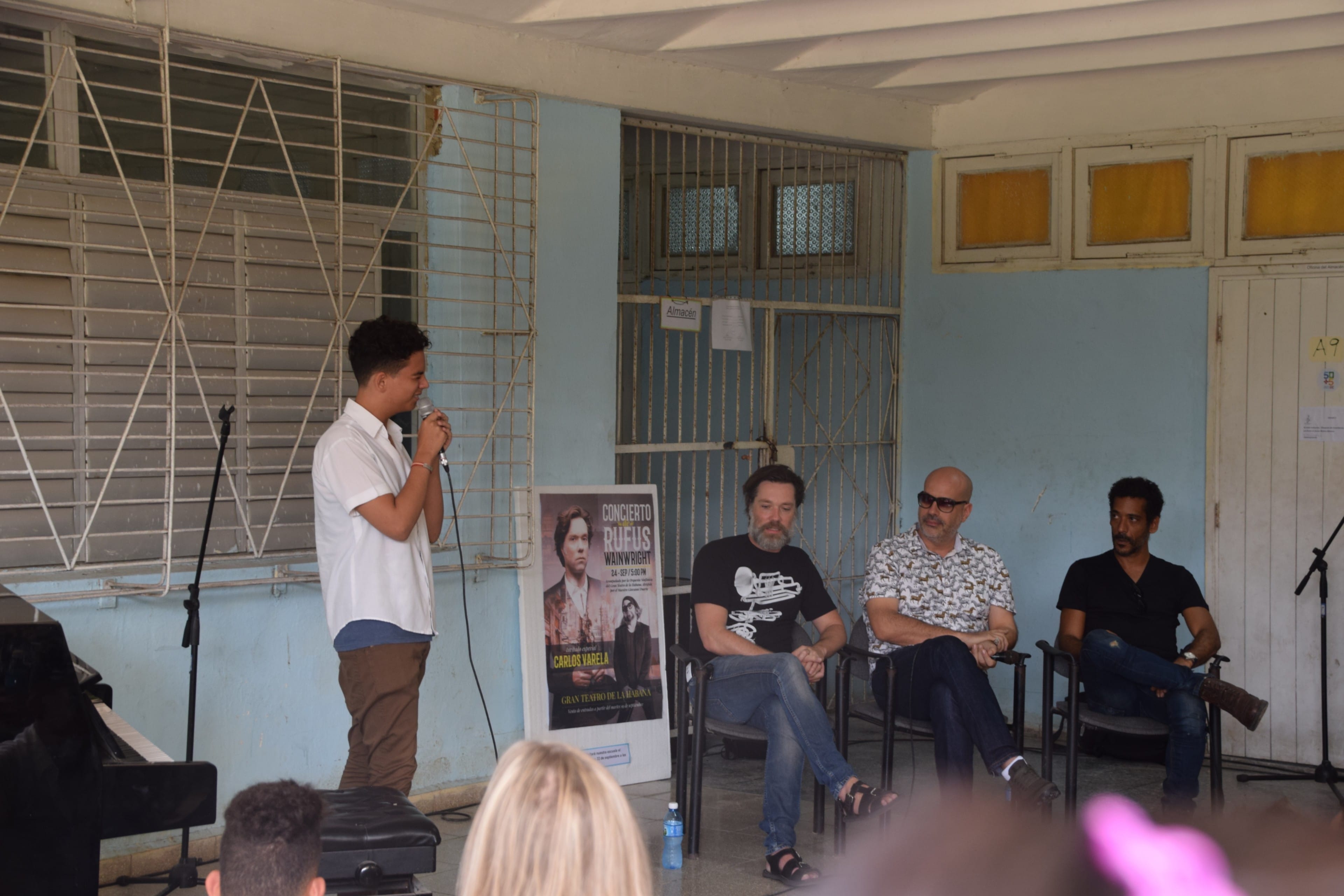 Later, Wainwright participated in a Q&A session. He was joined by an alumnus of the school, Giovanni Duarte (pictured far right), who now directs the symphony orchestra for the Gran Teatro de la Habana. Duarte told the students he lived outside of Havana as a student and had to rise at 4 a.m. every morning to make it to school on time. “The only thing that saved us all [in those days] was music,” he told the students, speaking of the more difficult days of Cuba’s past.