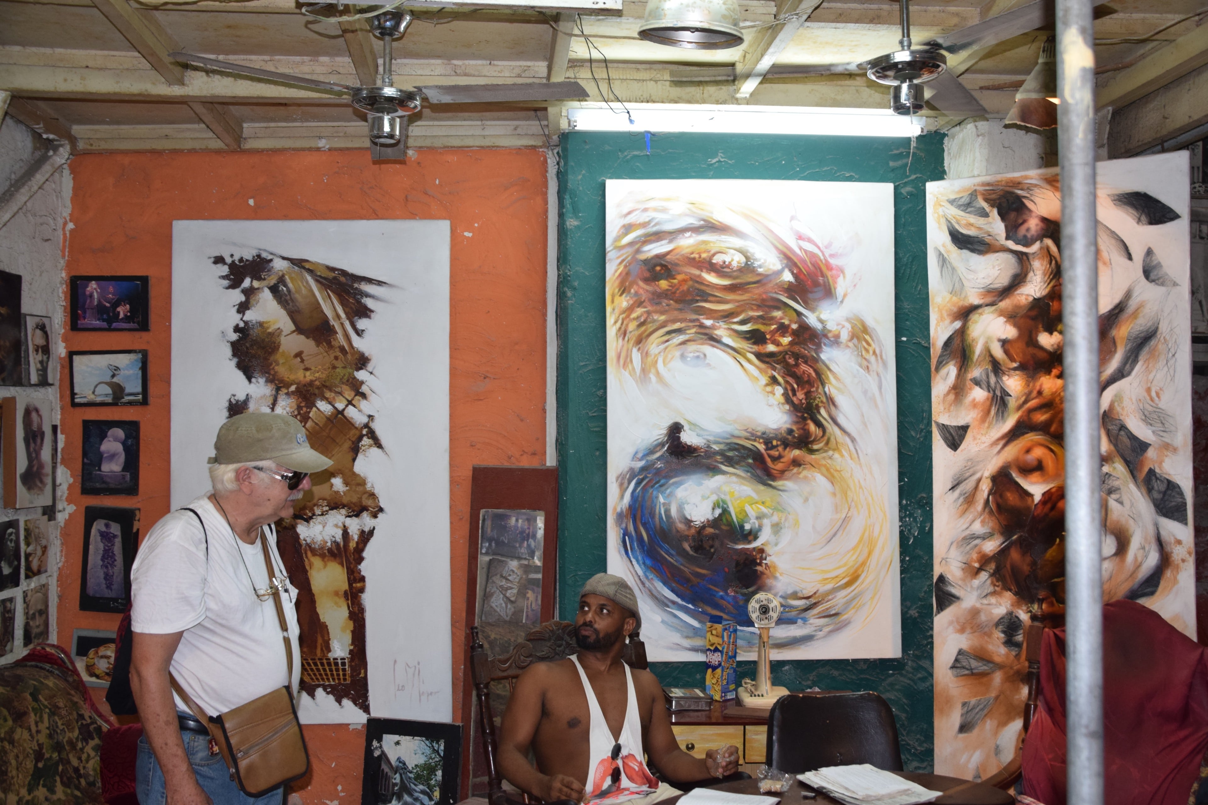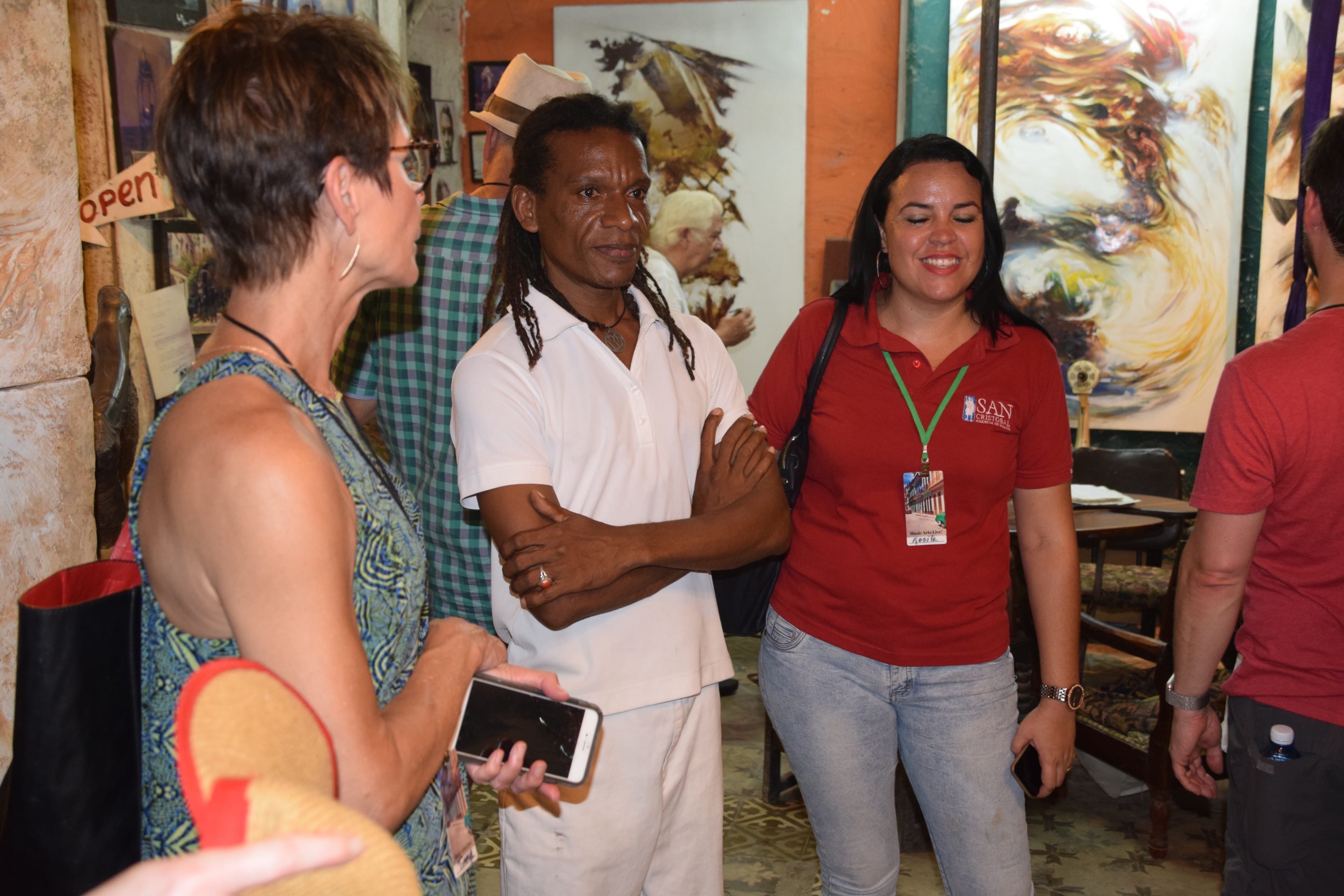 At the “Eye Of The Hurricane” art gallery in Old Havana. Artist Rogelio Rodriguez is pictured in the middle.