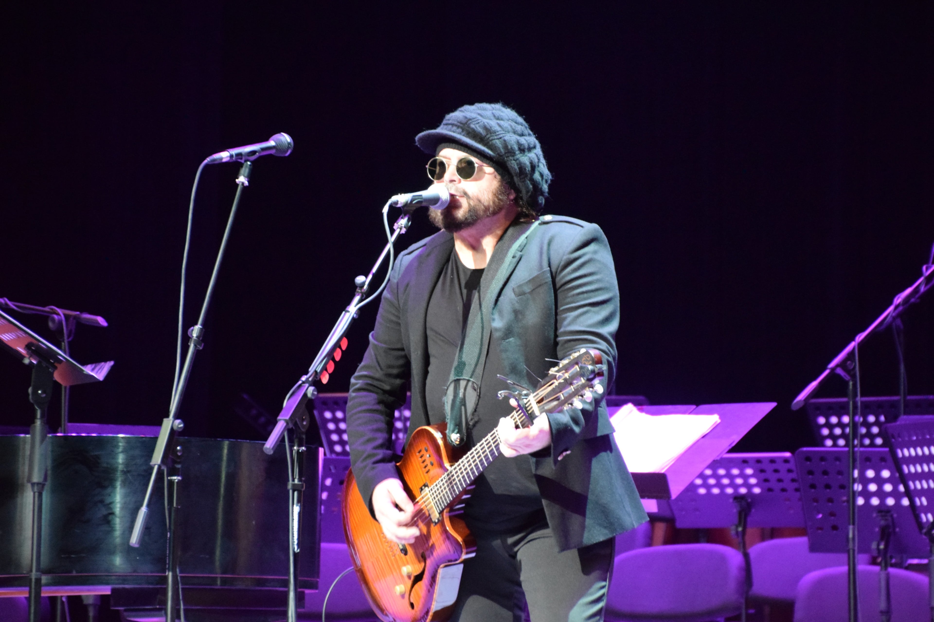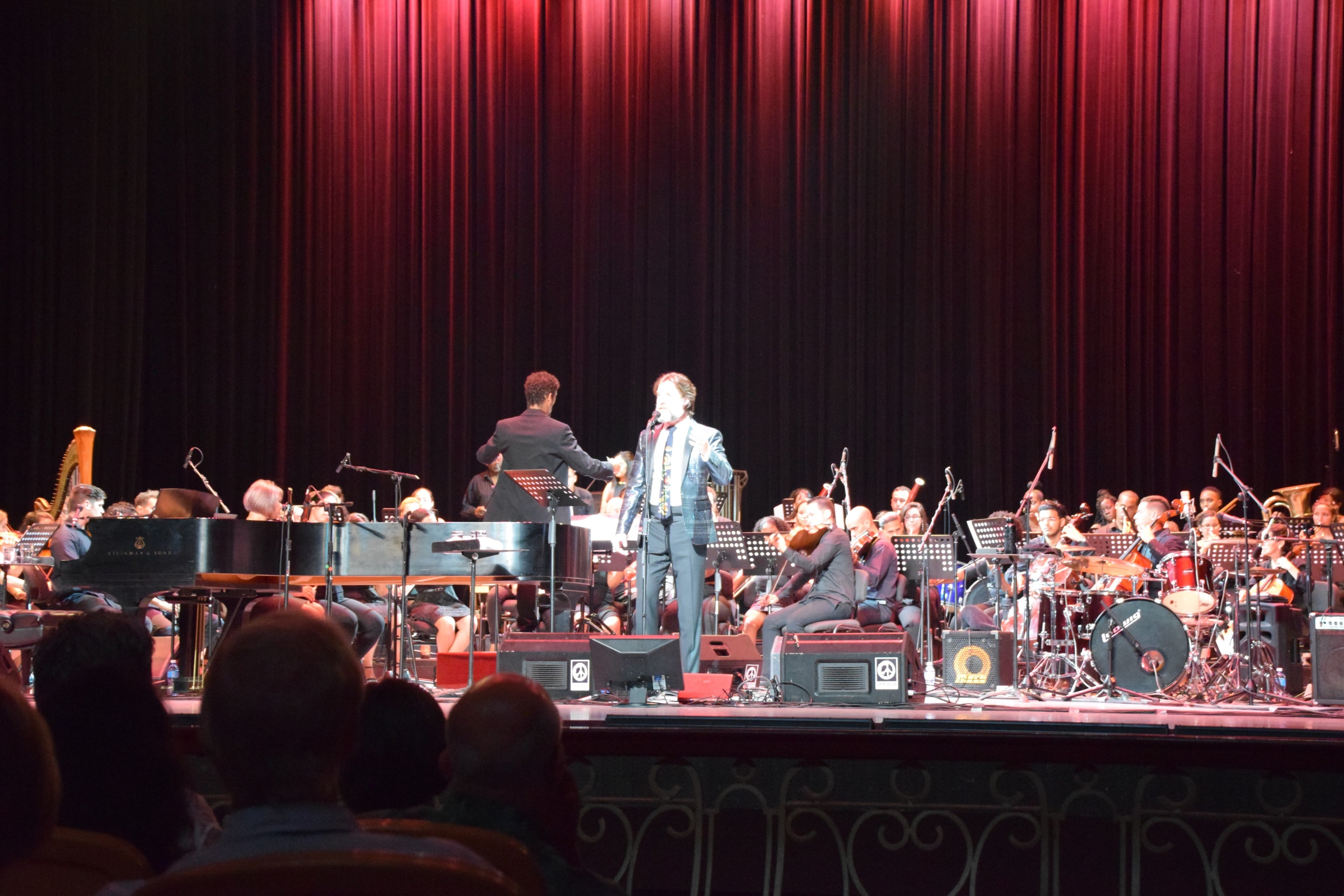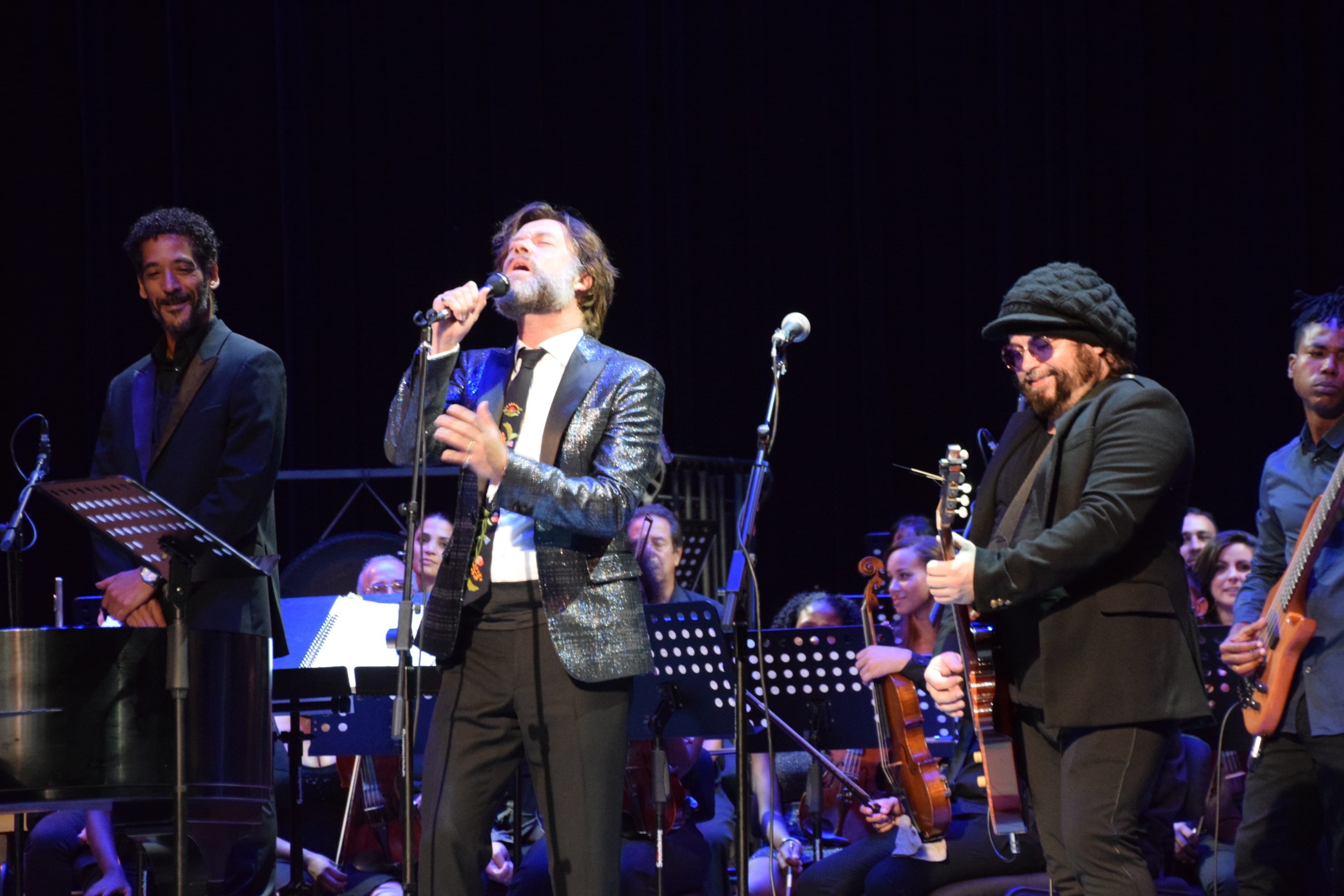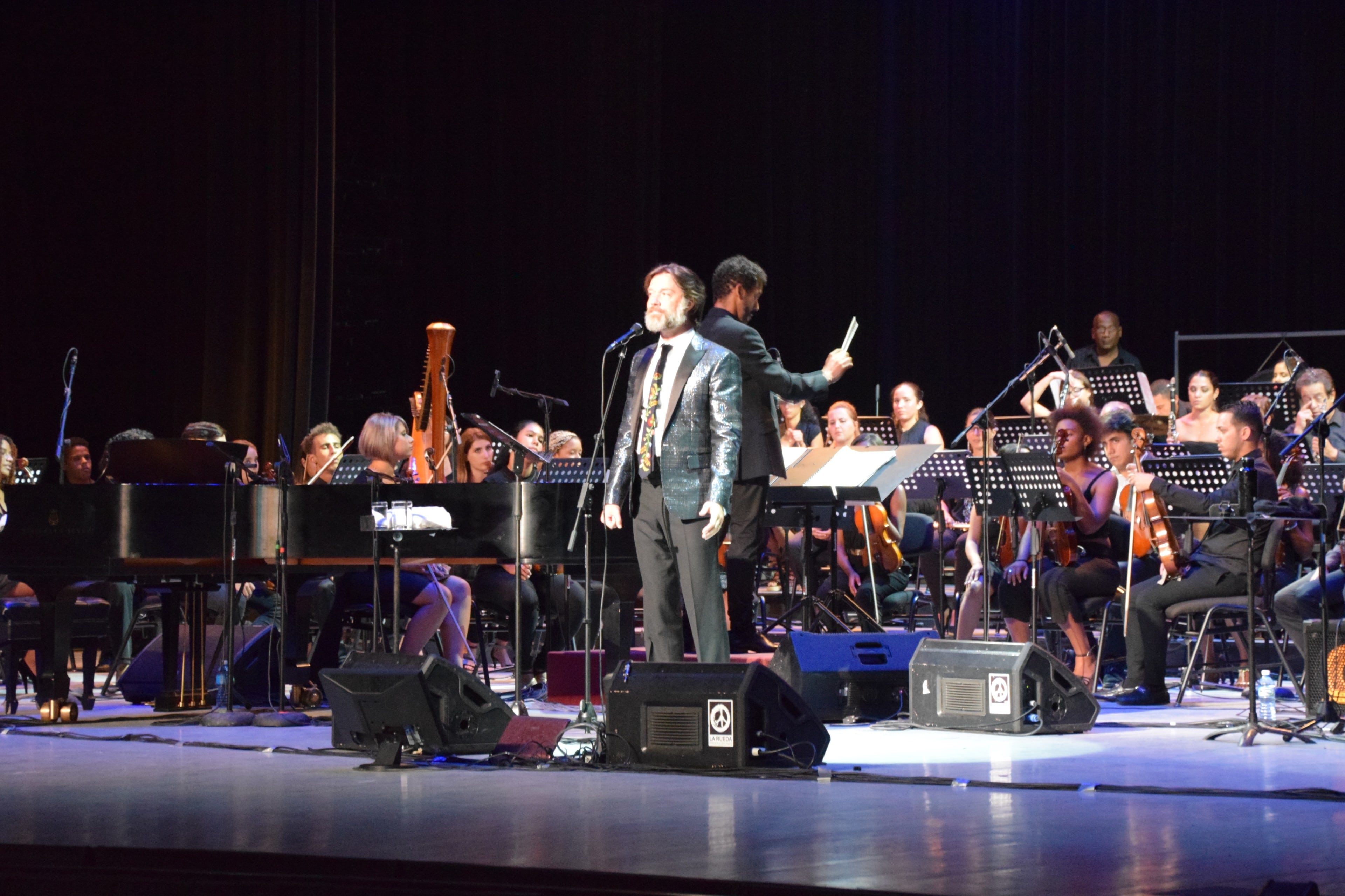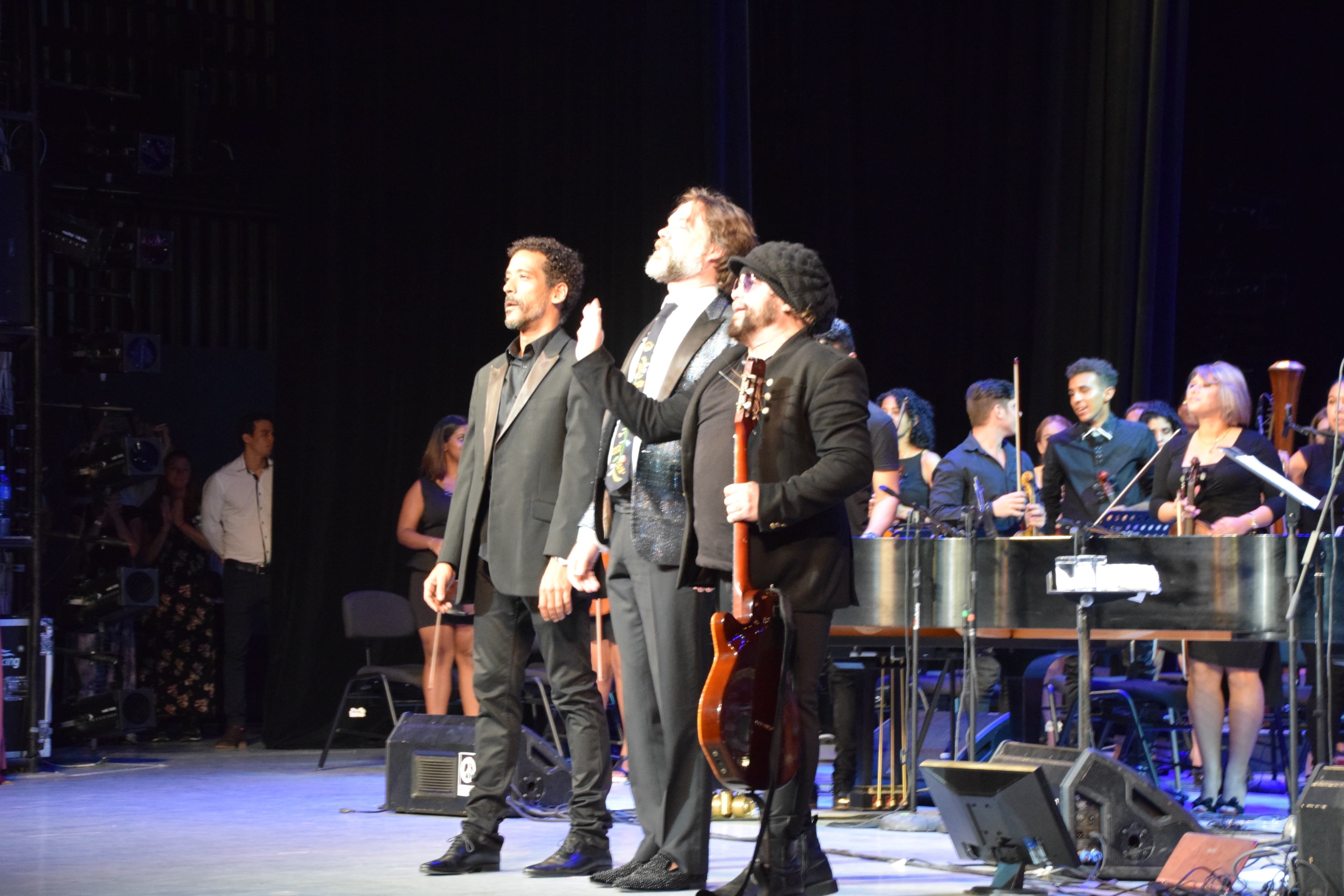 Wainwight takes a bow with conductor Giovanni Duarte (far left) and Carlos Varela.