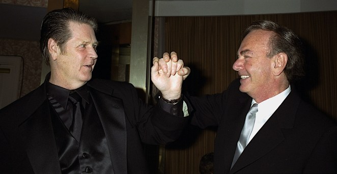 Brian Wilson of the Beach Boys (left) and Neil Diamond at the Songwriters Hall of Fame induction ceremonies at the Sheraton New York hotel. Wilson was an inductee, and Diamond received a Lifetime Achievement award. (Photo by Richard Corkery/NY Daily News Archive via Getty Images)